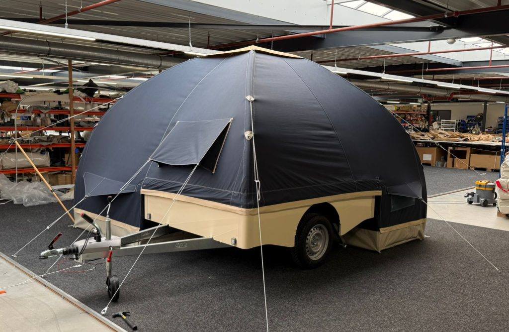 We wilden het beste van onze oppomptent behouden en combineren met een bagagewagen. Zo ontstaat een complete, comfortabele tent die gelijk klaar is voor gebruik.